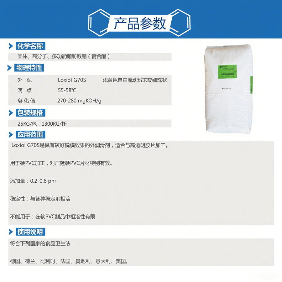 特 性:具有较好脱模效果的外润滑剂,用量比G70、G74少,适合于高透明胶片加工