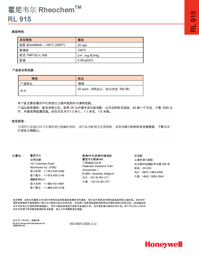 RHEOCHEM™ RL915 霍尼韦尔